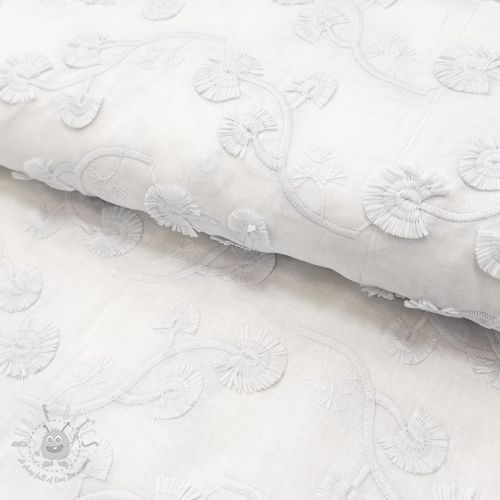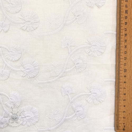 Țesătură din bumbac VOILE EMBROIDERY Flowers with stem white