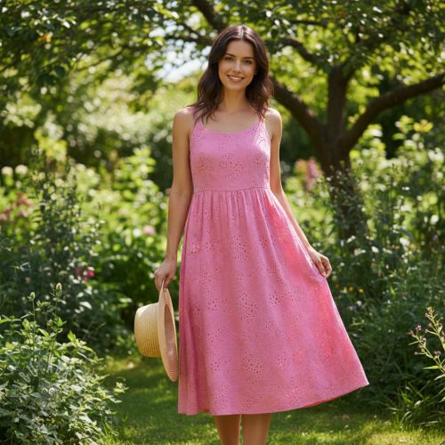 Țesătură din bumbac VOILE EMBROIDERY Vintage fuchsia