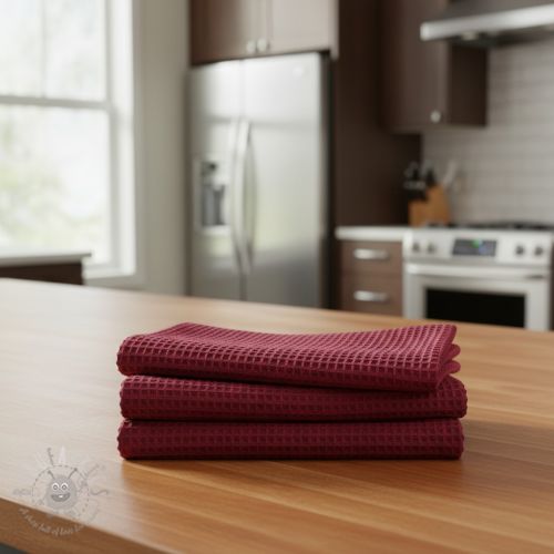 Țesătură din bumbac waffle bordeaux