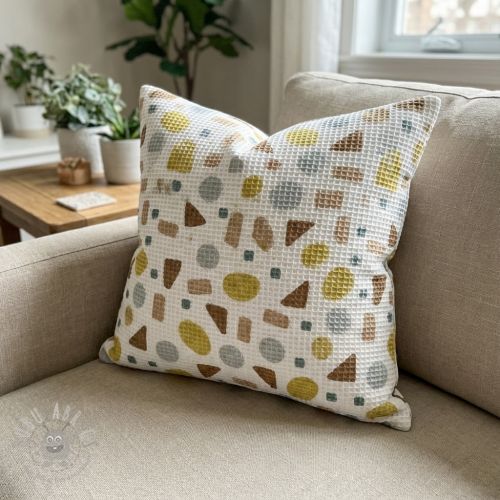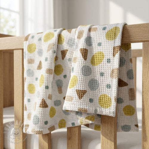 Țesătură din bumbac waffle Shapes yellow digital print