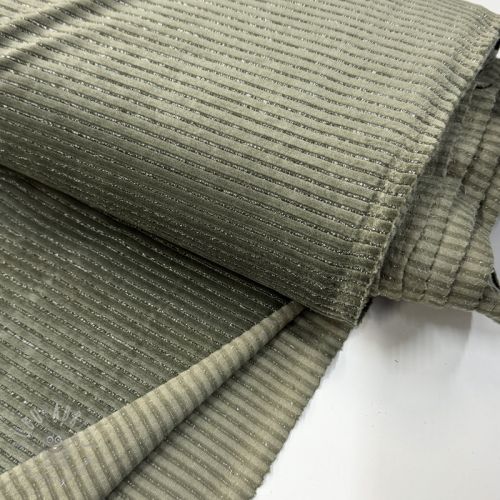 Tesătură elastică din catifea VELVET LUREX Stripe camo green
