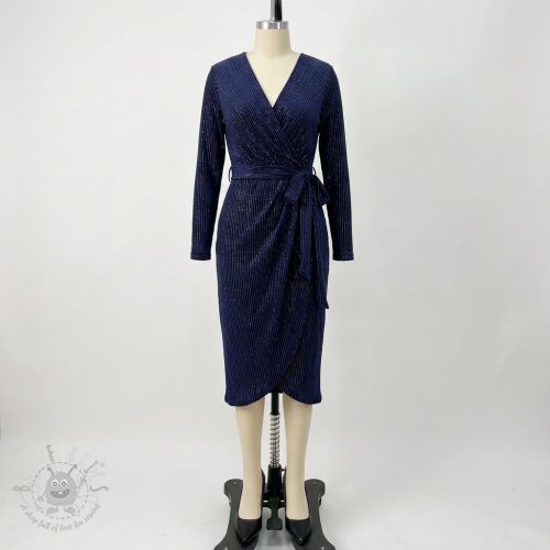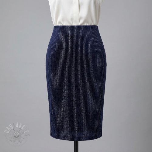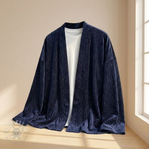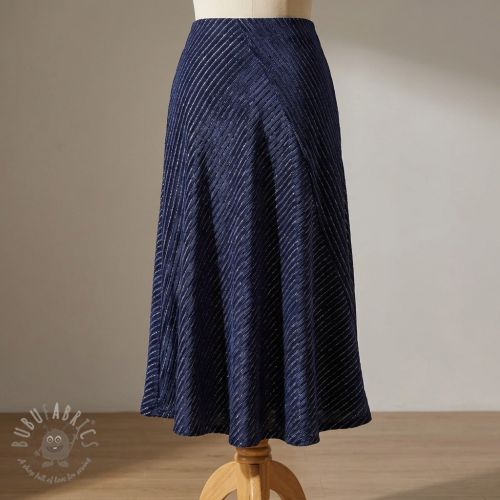 Tesătură elastică din catifea VELVET LUREX Stripe marine