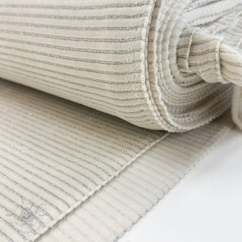 Tesătură elastică din catifea VELVET LUREX Stripe off white