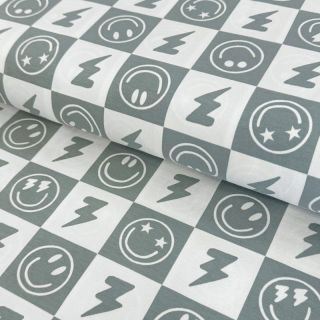 Tricot Happy faces sage digital print