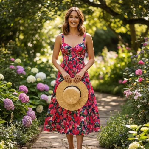 Viscoză LUREX Pink flowers digital print
