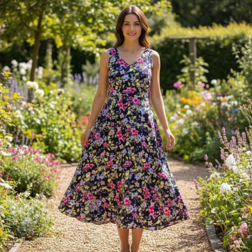 Viscoză RADIANCE Flower Uma navy digital print