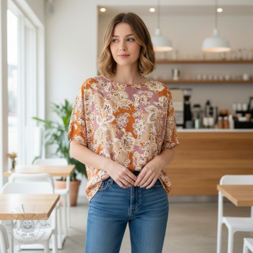 Viscoză SATIN Flowie Noe orange digital print