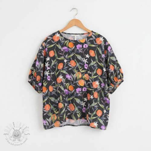 Viscoză SATIN Leaves and oranges digital print