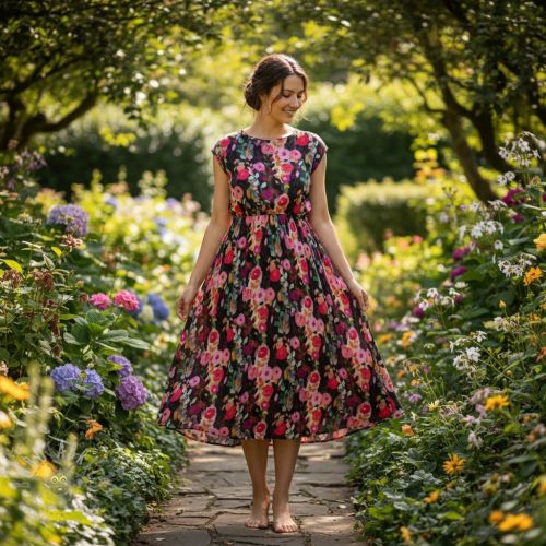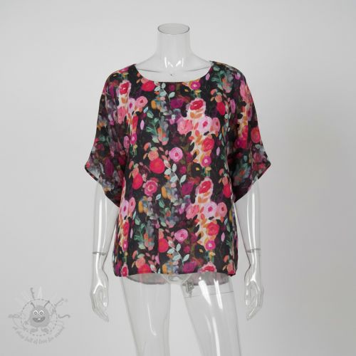 Viscoză SATIN Night flowers black digital print